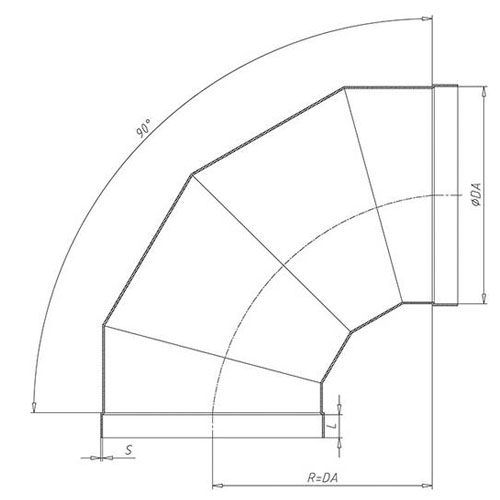 - Muffeninnendurchmesser in Anlehnung an die DIN 8077, R=DA